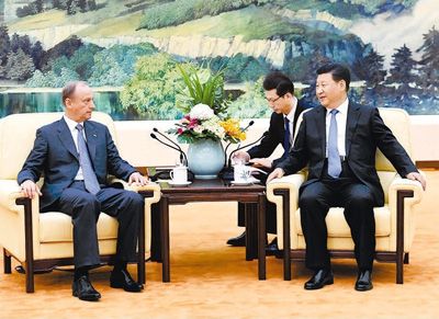 中共中央政治局委员、中央政法委书记孟建柱,国务委员杨洁篪参加会见。