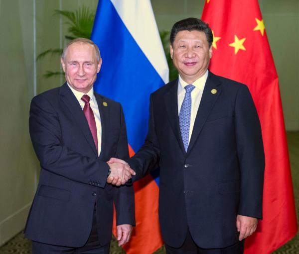 普京认为,中俄高水平的关系对全球和平稳定十分重要,双方应该保持密切高层交往。俄方期待着同中方共同推进欧亚经济联盟建设同“一带一路”建设对接合作,并加强在亚太经合组织等多边事务中协调合作。