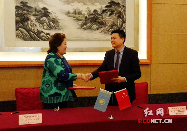湖南省贸促会与哈萨克斯坦企业家联合会签订合作备忘录 。