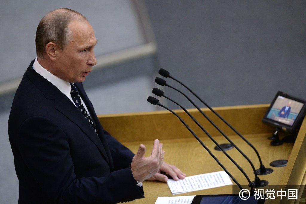 当地时间2016年10月5日,俄罗斯莫斯科,俄罗斯总统普京向选举产生的新一届国家杜马致开幕辞。