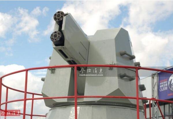 图为俄军近年来换装的隐身外形优化改进后的AK630M2双联近防炮,速射炮改为纵向布置,能进一步节省舰上空间,但射速仍能保证每分1万发。