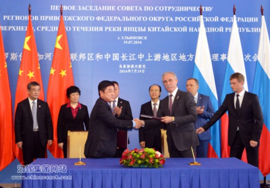 为进一步扩大中俄两地区合作,2016年7月19日,中国长江中上游地区和俄罗斯伏尔加河沿岸联邦区地方合作理事会会议在俄罗斯乌里扬诺夫斯克州召开,俄罗斯总统全权代表巴比奇主持会议,中国国务委员杨洁篪致辞。安徽、湖南和重庆等6省市政府负责人、14个伏尔加河沿岸联邦区领导人和重大项目公司代表参会,就进一步扩大两河流域地区间经贸、投资、人文合作提出了具体建议,并签署多个政府间、地区间双边合作协议和企业间合作协议。