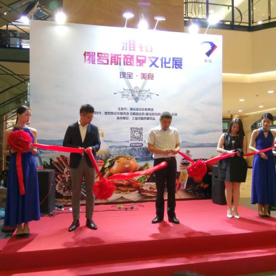 伊势丹百货繁田部长、雅钻投资控股集团董事长刘淳、澜艺文化传播有限公司总经理吴笠娜剪彩 7月25日,由雅钻投资控股集团主办、俄罗斯驻华商务处协办的“瑰宝&美食——俄罗斯商品中国巡展”正式在梅陇镇广场1楼中庭开启,用千款百分百俄罗斯进口食品及部分俄罗斯原料加工的珠宝、工艺品,揭开了这个我们最大领国—俄罗斯的神秘面纱。雅钻投资控股集团董事长刘淳先生、俄罗斯驻沪副总领事钱金、伊势丹百货繁田部长、上海澜艺文化传播有限公司吴笠娜总经理等人共同为活动揭幕。