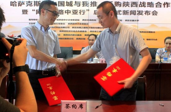 中新网陕西新闻7月17日电(记者 刘尼威) 17日,以“助力双起点,我推丝路行”为主题的哈萨克斯坦中国城与“我推·乐购陕西”战略合作签约暨启动仪式新闻发布会在西安举行。为抓住“一带一路”和“互联网+”战略发展机遇,“我推·乐购陕西”与哈萨克斯坦中国城——丝绸之路中国产品体验馆达成战略合作,启动“网上丝路中亚行”投资贸易促进活动项目,打通网上丝绸之路,开辟陕西特色精品“走出去”的新通道。通过跨境电子商务综合服务平台让更多的人了解陕西的特产及文化,加快陕西特色经济走出去的步伐。