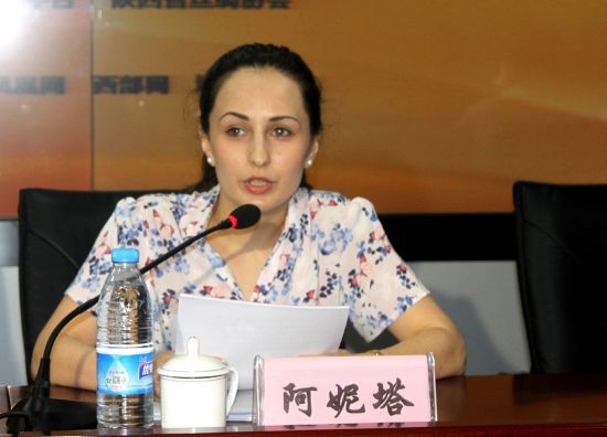 哈萨克斯坦卡拉干达州企业家联合会(NCE)驻陕西办事处代表阿妮塔发言。刘尼威 摄