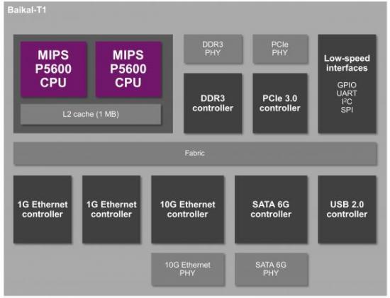 俄罗斯计算机公司T-Platforms 开始批量 生产本国 自主研发 的第一种 PC 处理器 Baikal-T1。 Baikal-T1基 于MIPS架构,使用了2个MIPS P5600 CPU核心,主频1.2 GHz,封装大小 25 x 25 mm,制造工艺28纳米,功耗不到 5 W。