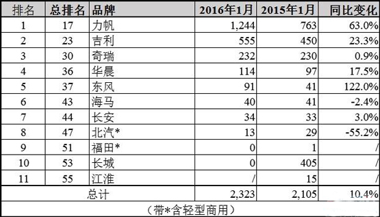 2016年1月销量:15,577辆。同比变化:-10.9%