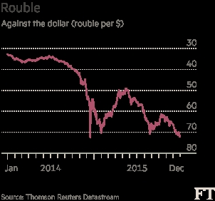 这推动卢布跌破1美元兑73卢布水平,除了2014年12月险些造成俄罗斯银行体系遭遇挤兑的一段短暂暴跌以外,这是卢布有史以来的最低水平。到莫斯科傍晚时间,卢布汇率下跌了1.2%,至1美元兑73.1570卢布,比2015年初下跌了26%。