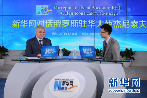 资料图:俄罗斯驻华大使安德烈·杰尼索夫在新华网演播室接受独家访谈。
