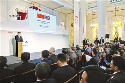 十月二十一日,国家主席习近平和英国首相卡梅伦共同出席在伦敦金融城举行的中英工商峰会并致辞。