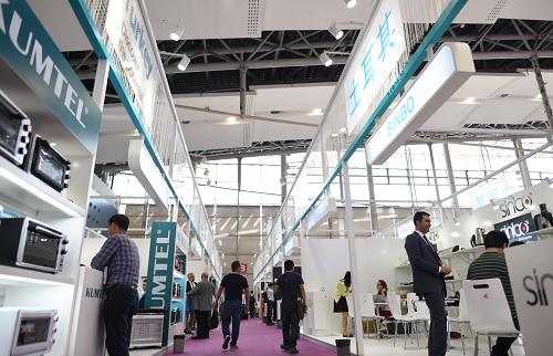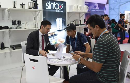 10月16日,客商在广交会土耳其企业展位上参观选购。据统计,前来广州参加第118届中国进出口商品交易会(简称“广交会”)的“一带一路”沿线国家和地区企业达353家,占参加进口展企业总数近六成。新华社记者 卢汉欣 摄