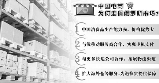 俄罗斯媒体将中国电商在俄罗斯市场上的迅猛增长称为“传奇”。2011年起,俄罗斯已超越德国成为欧洲互联网用户最多的国家,在网络使用量上位列欧洲第二。俄本国消费品生产能力相对较弱,很多西方商家考虑俄罗斯地区发展不平衡、支付和物流水平滞后等不利因素,在市场评估时未将俄罗斯作为优先发展方向。相比之下,中国企业看到了其中的机遇,积极开拓这片市场。