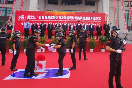 当日,中国(黑龙江)自由贸易试验区卢布现钞陆路跨境调运通道开通仪式在绥芬河举行,同时举行的还有哈尔滨银行绥芬河口岸首笔卢布现钞跨境调运交接及人民币现钞跨境调运启动仪式。至此,绥芬河口岸成为首个实现对俄卢布现钞陆路调运的口岸,标志着绥芬河自贸片区首条对俄卢布现钞陆路跨境调运通道成功打通,对俄金融服务取得新突破。