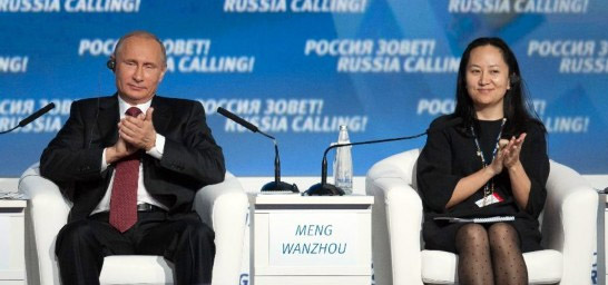 资料图:普京与华为首席财务官孟晚舟在莫斯科第六届“俄罗斯在召唤”国际投资论坛。