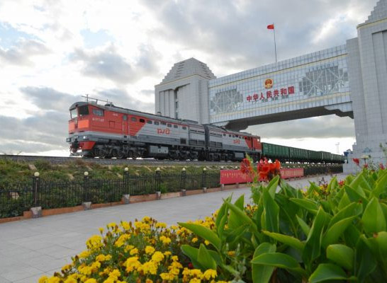中俄资讯网资料图:在中国最大的陆运口岸城市满洲里,一列来自俄罗斯方向的列车驶过中国国门。