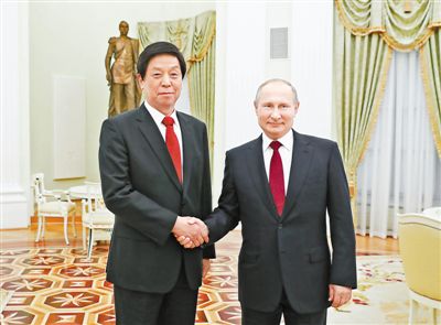9月25日至28日,应俄罗斯国家杜马主席沃洛金邀请,全国人大常委会委员长栗战书对俄罗斯进行正式友好访问。这是9月25日,栗战书在莫斯科会见俄罗斯总统普京。