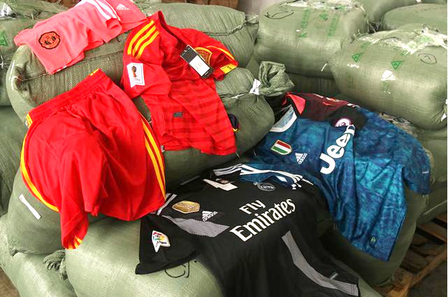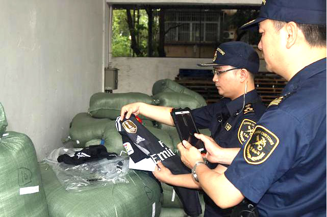 资料图:海关查获俄罗斯世界杯侵权货物现场